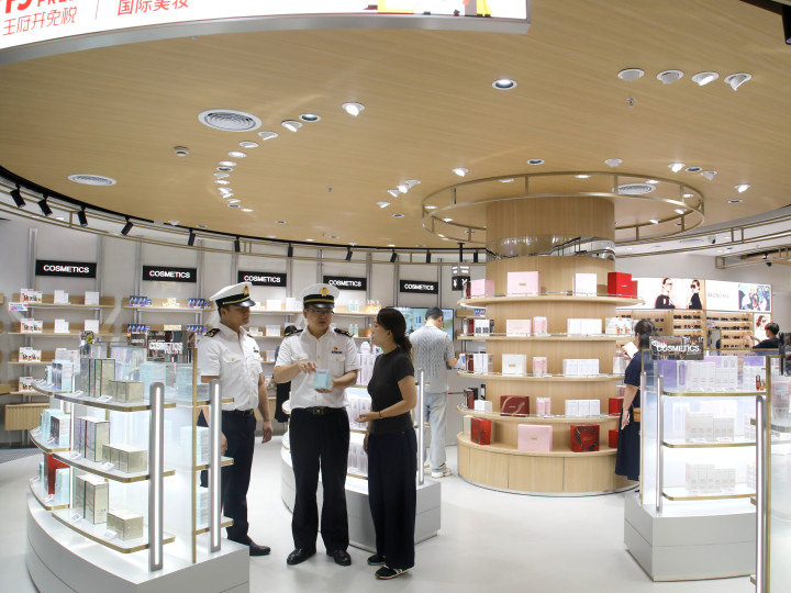 9月15日,长沙海关关员在长沙市内免税店进行监管。新华社发