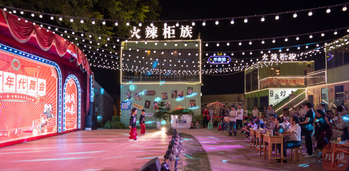 夜幕下,经过重新打造的丝厂旧址,霓虹灯流光溢彩,老歌一首接着一首,瞬间将人拉回八九十年代。当晚,首次举办的“村K大舞台,挑战你就来”活动,更是将现场氛围掀向高潮。