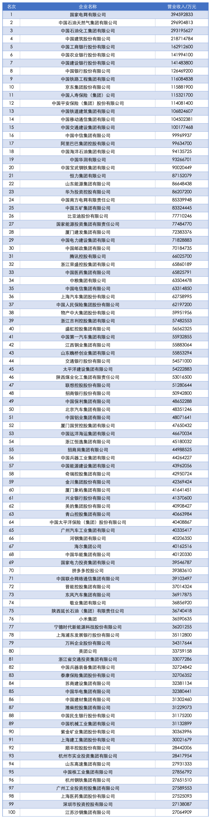 规模总量保持增长。企业500强营业收入达110.15万亿元,较上年500强有所增加。入围门槛实现23连升,达479.60亿元,提升5.79亿元。资产总额为460.85万亿元,增长7.46%。榜单中,千亿规模企业数量增至267家,比上年增加45家,有15家企业的营业收入超过万亿元。其中,国家电网营业收入超过3万亿元,即将突破4万亿元;中国石油、中国石化、中国建筑的营业收入超过2万亿元。