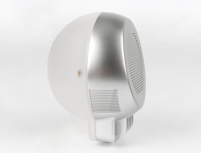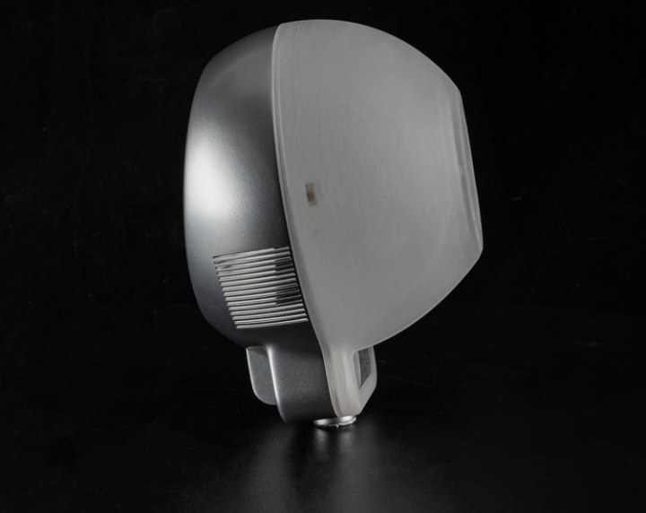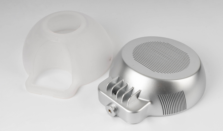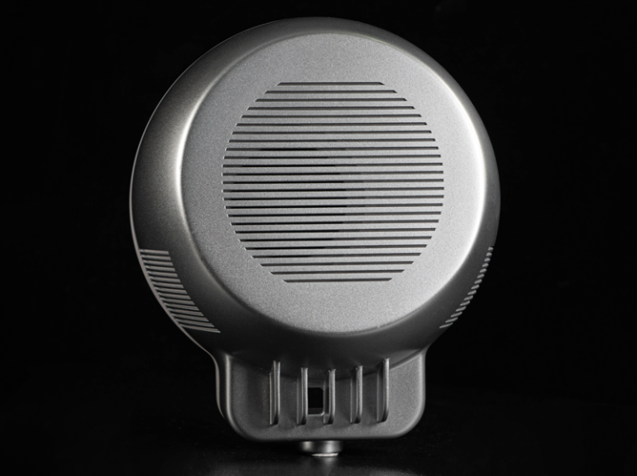 今天给大家介绍一个案例来说明,SLA工艺在手板打样中的满足不同的需求的能力,这个案例是一个电子产品摄像头样件。它是通过3D打印SLA工艺打印半透明树脂与ABS材料+喷银色光油后处理工艺结合完成的案例,首先展示下它的整体外观: