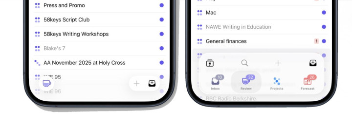 目前首批适配“液态玻璃”的多为小型开发商,例如OmniGroup在系统发布当天就更新了OmniFocus,Drafts等文本工具也迅速跟进。