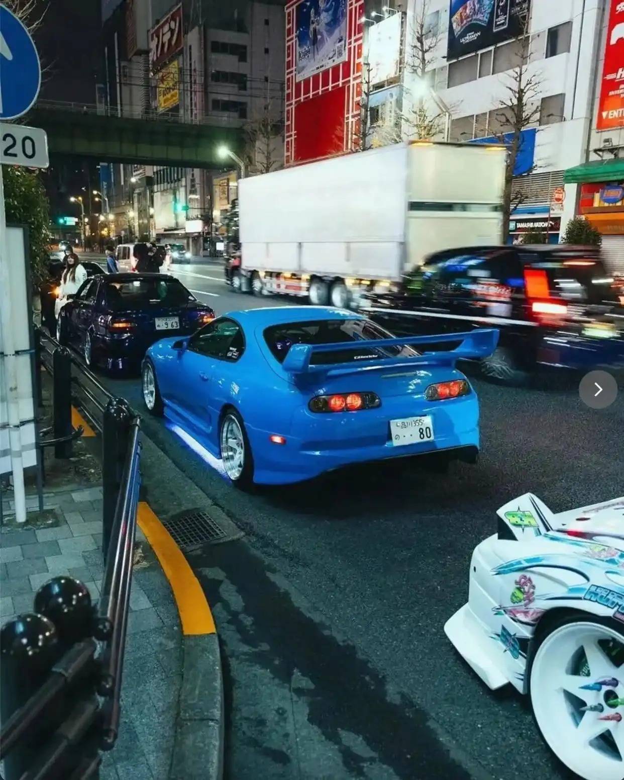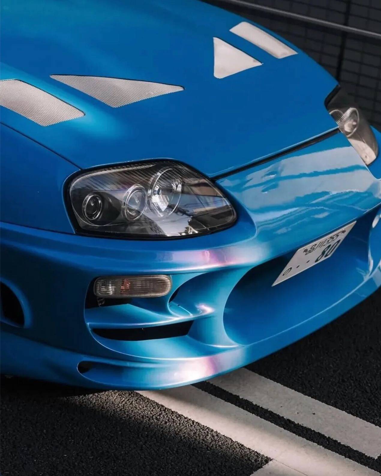 这是一台将《速度与激情》初代情怀“粉刷”进东京街头的A80 Supra。第四代丰田Supra(A80)是90年代JDM四大天王之一,搭载传奇2JZ引擎,被誉为“牛魔王”。这台粉蓝色A80复刻了《速度与激情1》布莱恩座驾的灵魂:同款的Bomex车身包围勾勒出锋利线条,TRD引擎盖上的散热孔透着战斗气息,再加上一抹复古蓝底盘灯在夜幕下亮起,瞬间把人拉回那个满街JDM飙车的黄金年代。光是这副姿态停在东京街头,配上霓虹灯光,就是一张行走的情怀壁纸。当这台挂着粉蓝外衣的A80穿行在霓虹闪烁的东京街头,它不仅仅是一台改装车,更是一封写给JDM黄金年代的情书。